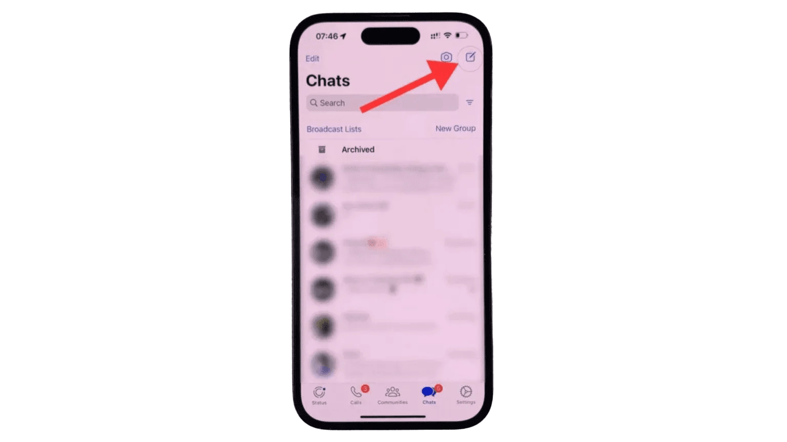 Step 2: After you installed and set up a WhatsApp account, go to WhatsApp and tap on the new “Notepad” icon on the top right corner of the screen.