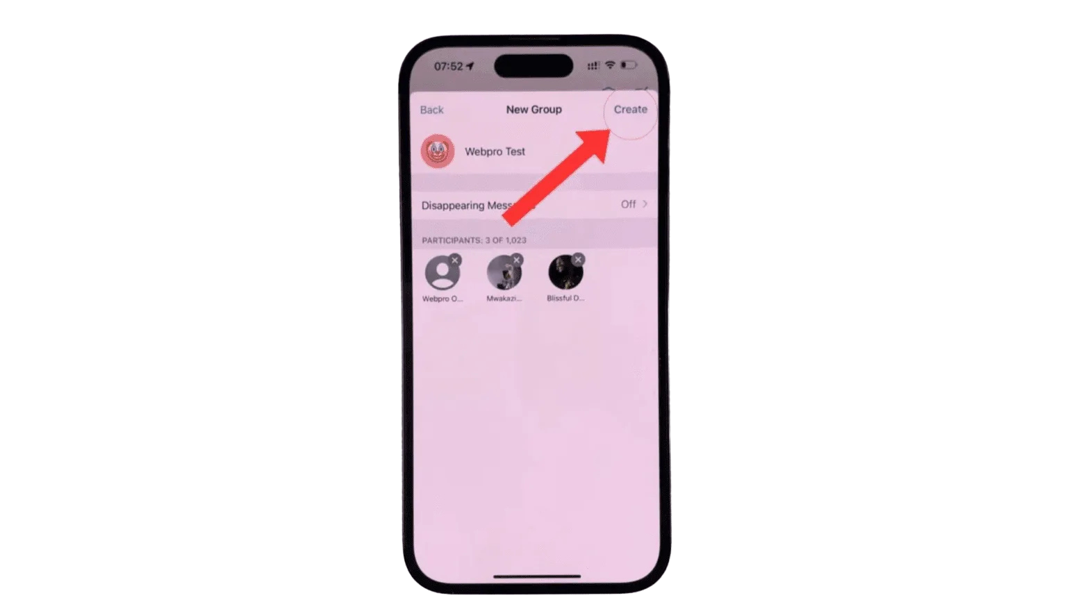 Step 9: Finally, tap on the ‘Create’ option located at the top right corner of the screen. Once you tap ‘Create’, your WhatsApp group will be created, and WhatsApp will automatically send a message to the members you’ve added.